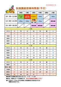 2025年秋期講習会時間表